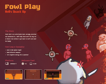Fowl Play is a game developed in Godot, written in GDScript. This is my final year project, a compilation of all that I’ve learned (and more) in my 3 years of studying in The One Academy.